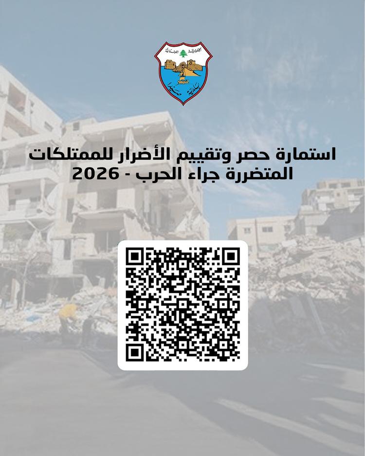 في إطار حرص بلدية صيدا على توثيق الأضرار الناتجة عن الاعتداءات الإسرائيلية التي طالت المدينة بعد تاريخ ٢\٣\٢٠٢٦، واستنادًا إلى الحاجة لتحديث قاعدة بيانات دقيقة وشاملة، تمهيدًا لمتابعة الملفات مع الجهات المختصة والمعنية بالتعويض وإعادة التأهيل، وبناءً على التنسيق والتعاون مع مجلس الجنوب، تدعو بلدية صيدا جميع المواطنين الذين تضرّرت ممتلكاتهم (ضمن نطاق بلدية صيدا الاداري حصرا)، سواء الوحدات السكنية أو غير السكنية (محال تجارية، مؤسسات، مستودعات، وغيرها)، إلى المبادرة بشكل عاجل إلى تعبئة الاستمارة الخاصة بالأضرار، وفق النموذج المعتمد المرفق في الرابط: