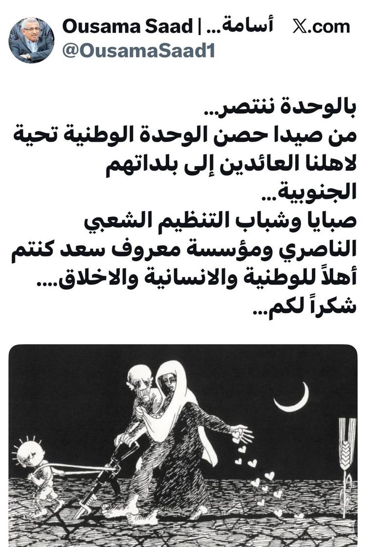 قال امين عام التنظيم الشعبي الناصري النائب الدكتور أسامة سعد على منصة “اكس”: