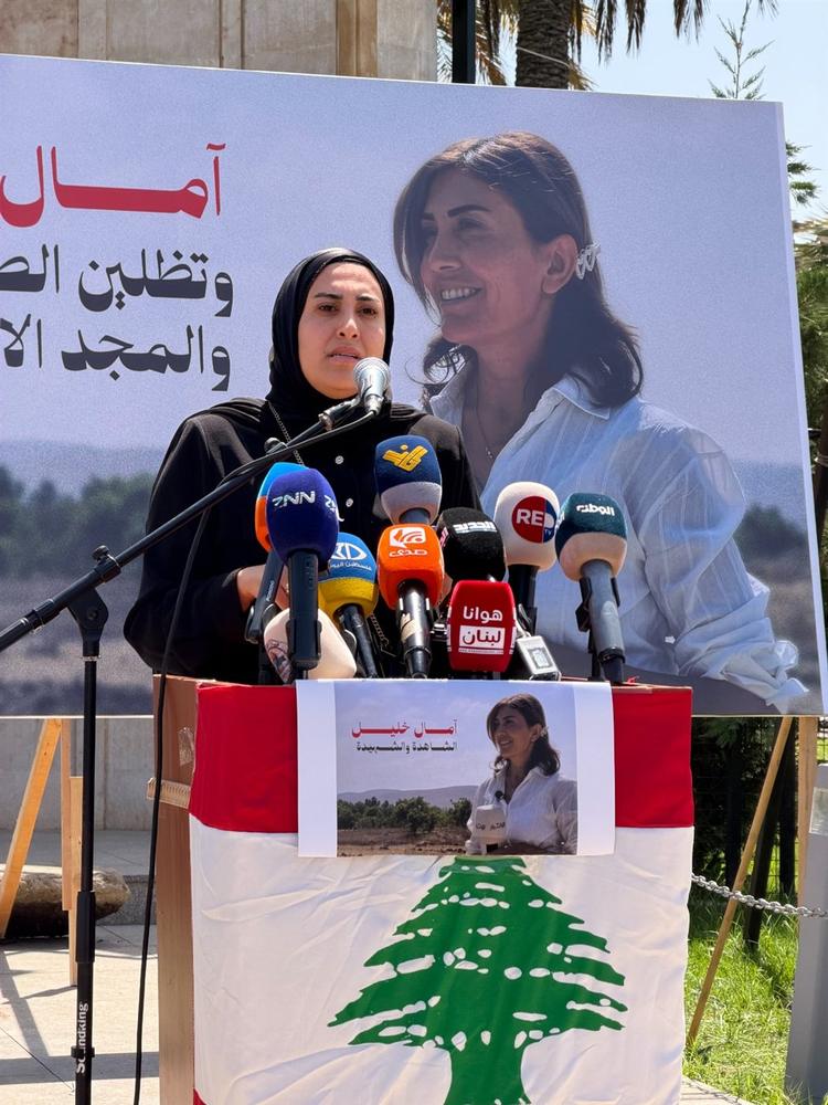 وفي كلمةٍ حملت وجع العائلة وصوت الحققالت زينب خليل شقيقة الشهيدة قالت أن استهداف الإعلاميين هو استهداف لحرية الكلمة , وأن دماء الصحافيين ستبقى شاهدة على جرائم الاحتلال لا سيما حين تتحوّل الكاميرا إلى شاهدٍ خطير على الحقيقة.